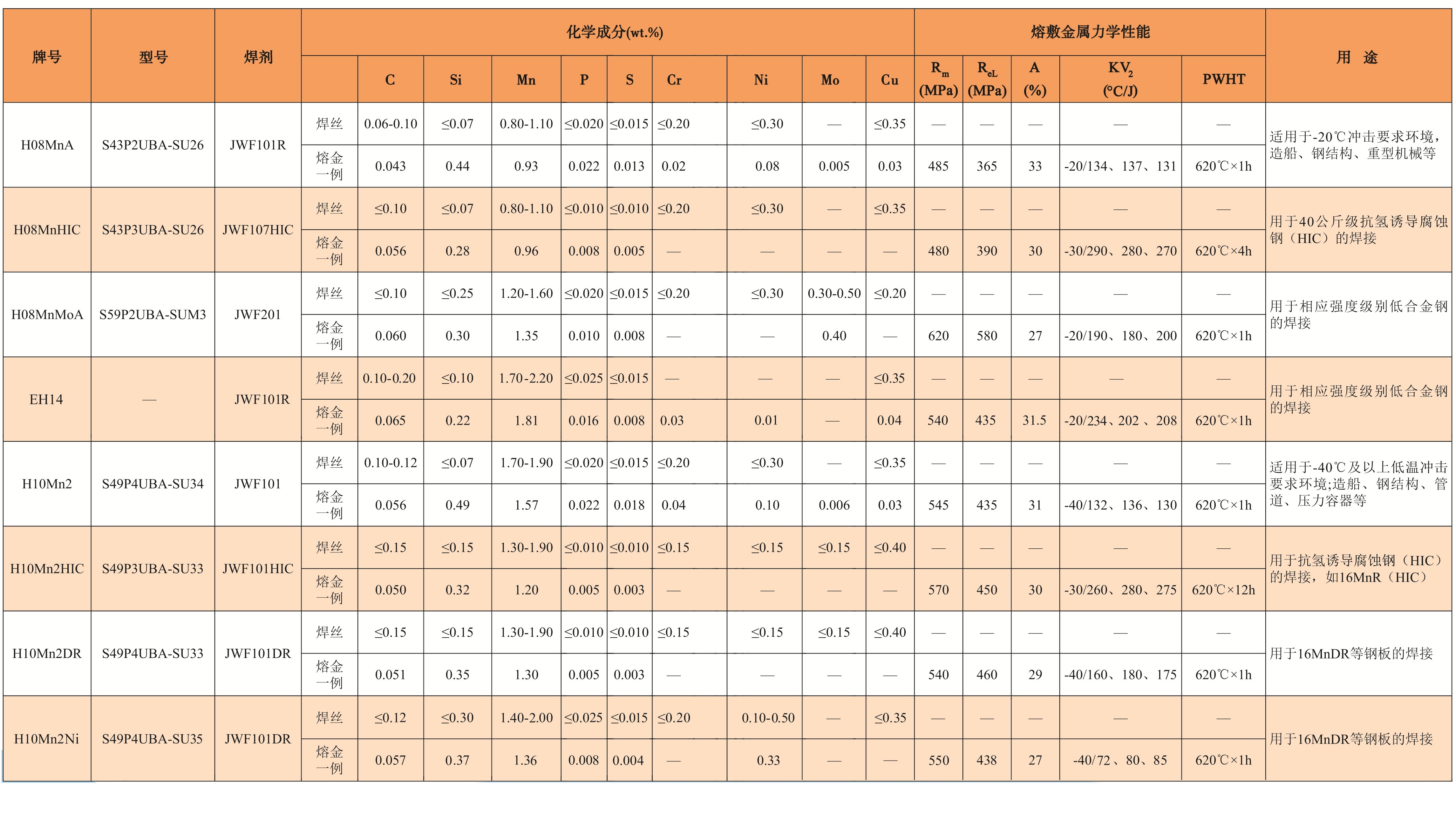 非合金鋼及細晶粒鋼用埋弧焊絲及焊劑