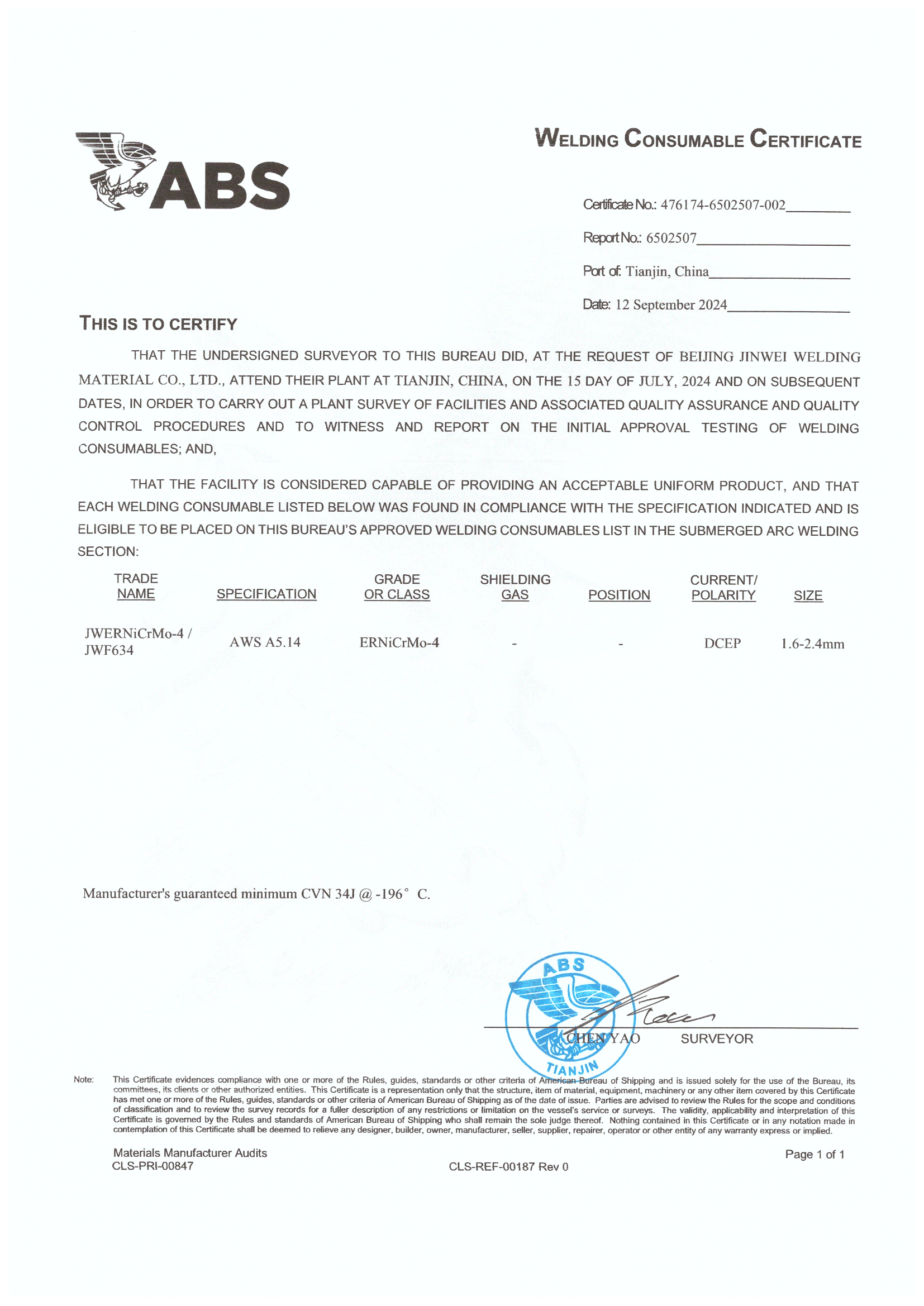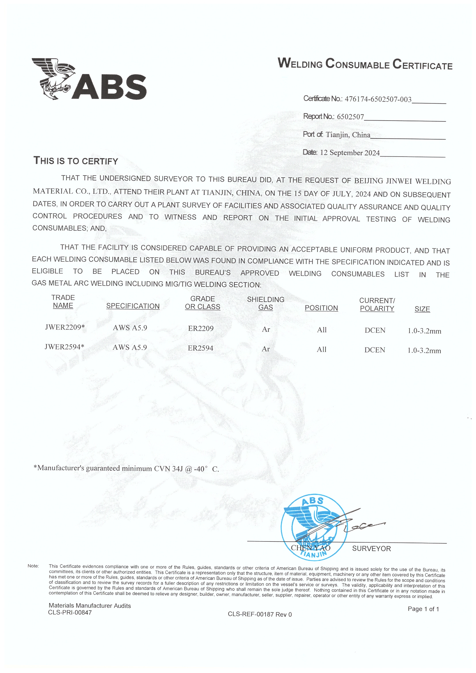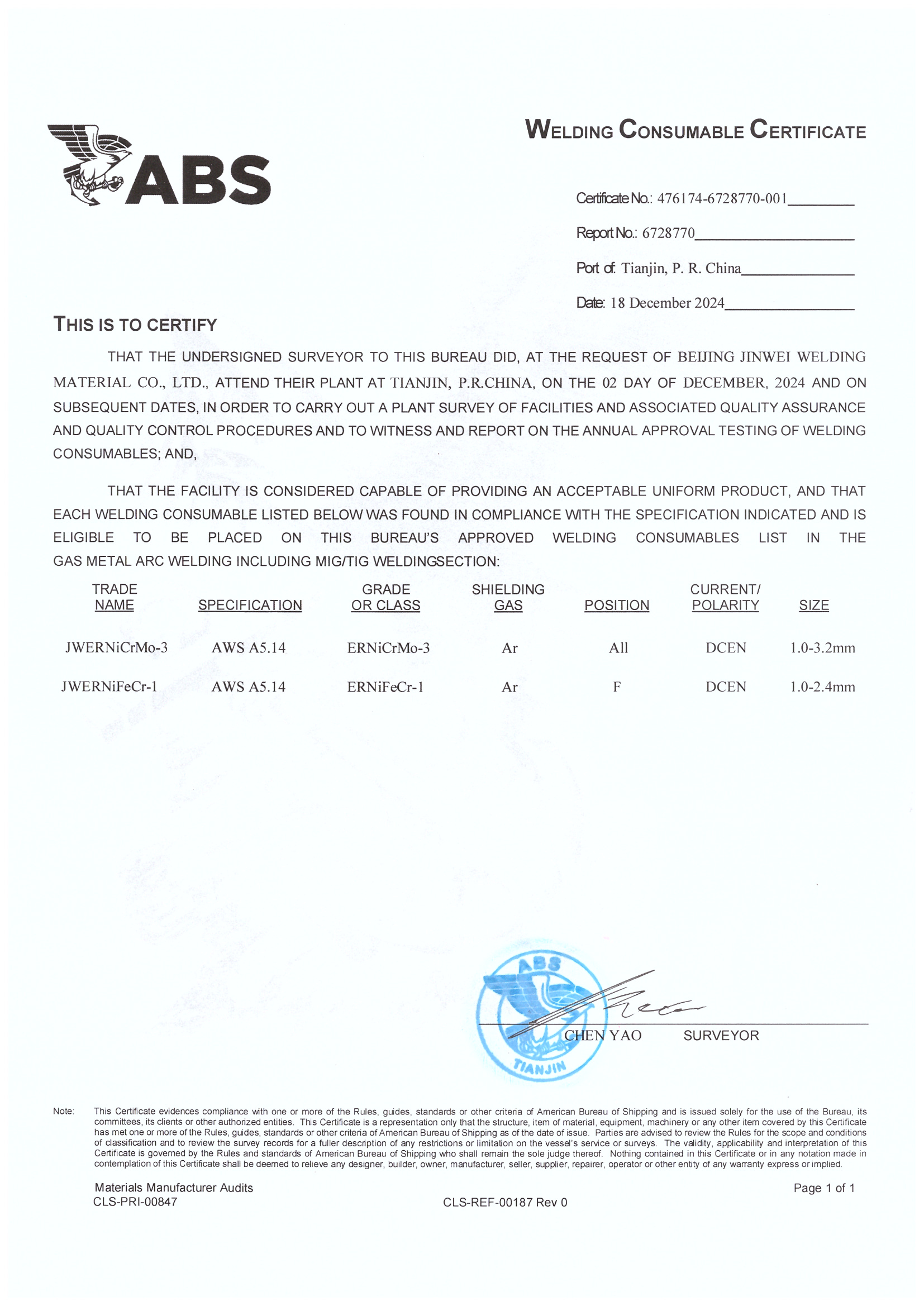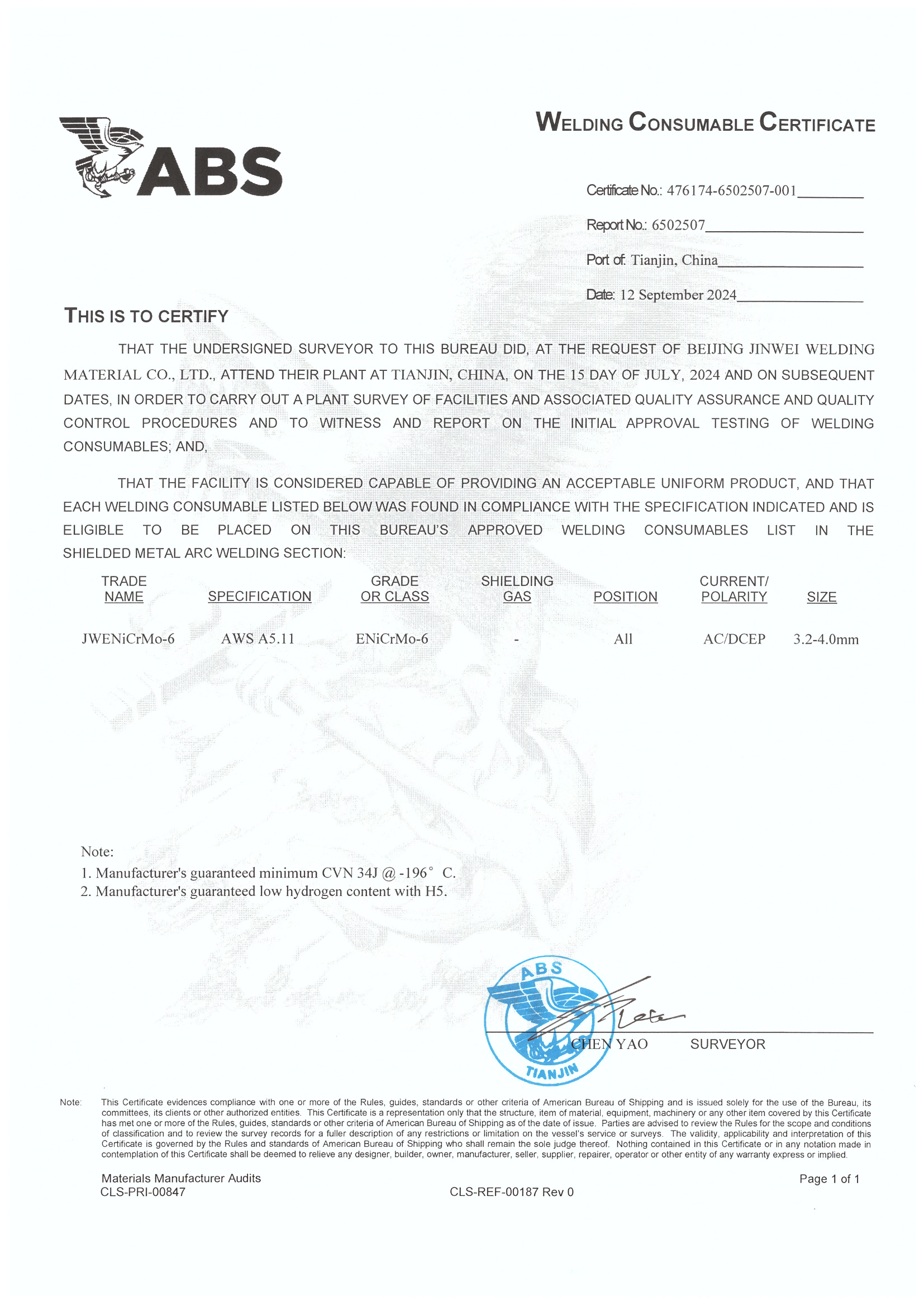 美國(guó)船級(jí)社認(rèn)證證書
