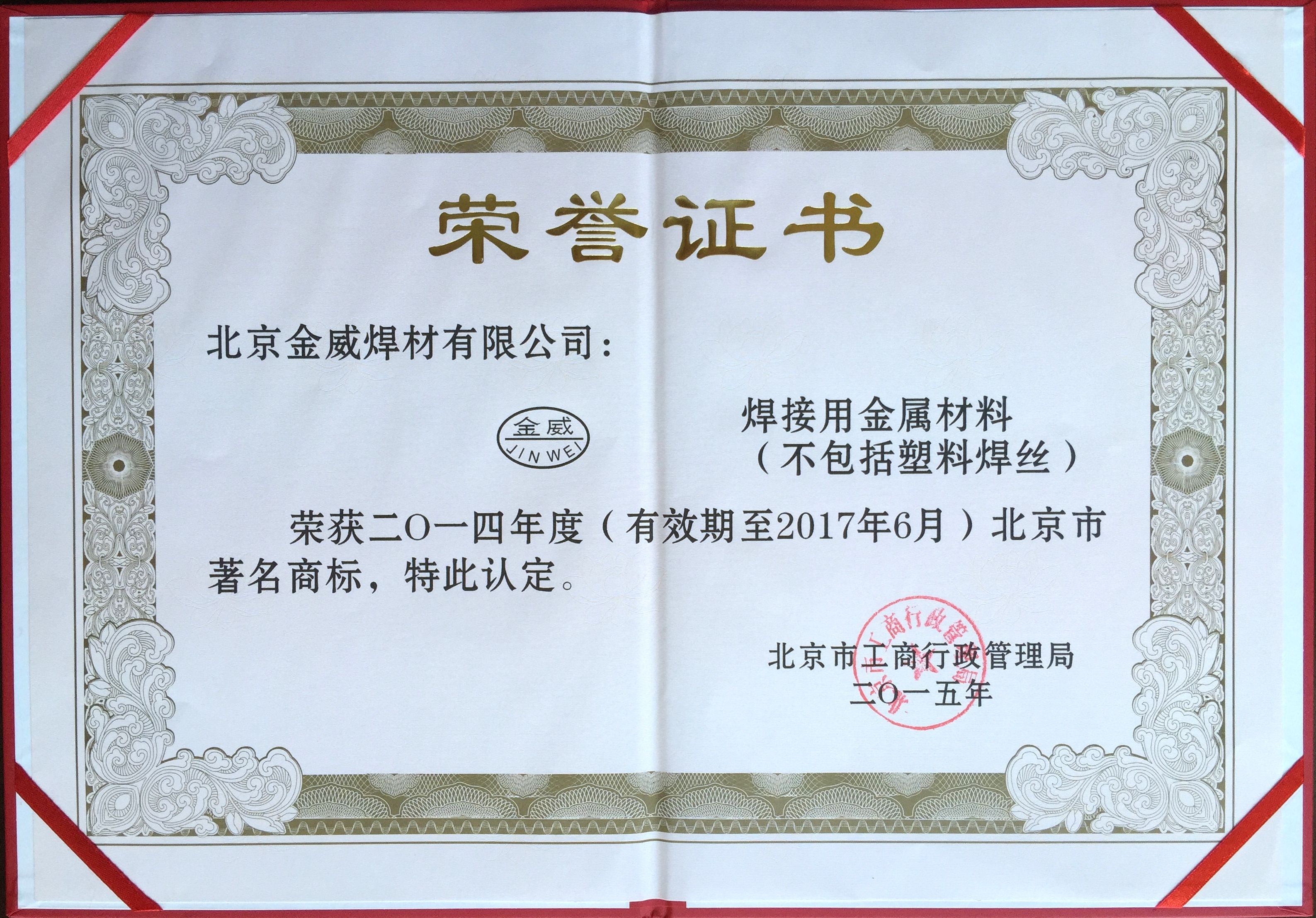 北京市著名商標(biāo)榮譽(yù)證書(shū)