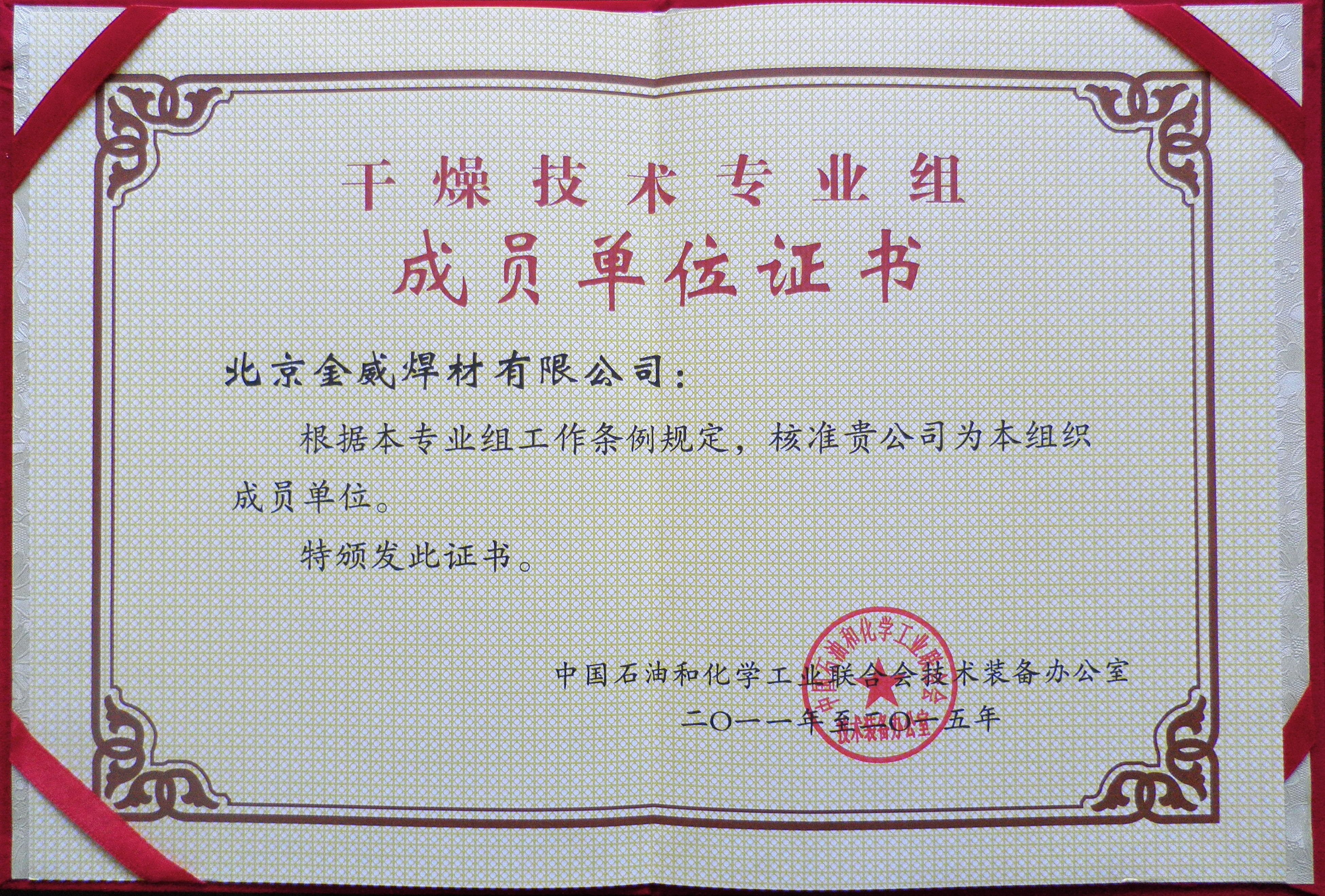 干燥技術(shù)專業(yè)組成員單位證書